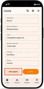 No rodapé da tela com seus dados, toque em “Mais opções”.