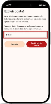Insira o e-mail com o qual sua conta foi cadastrada, toque em “Excluir conta” e depois confirme a exclusão.